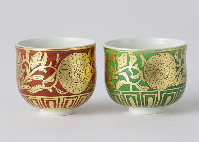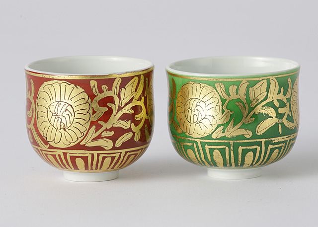 【Lot0199】 金襴手ぐいのみ(2点1組)