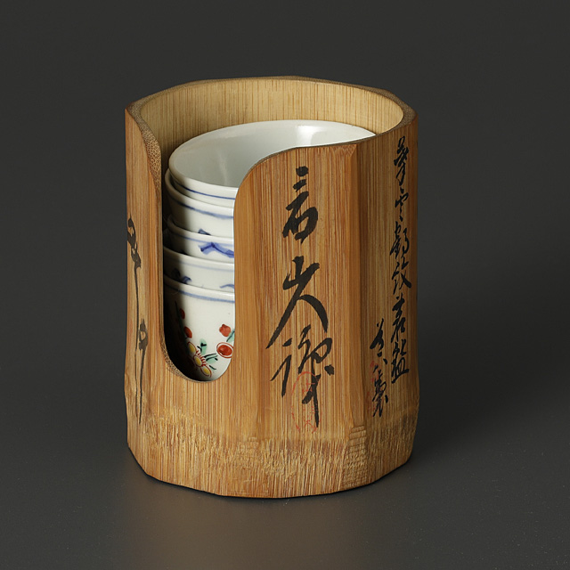(箱)作家署名入の竹筒付 ヤケ、シミ、スレ、シール貼付