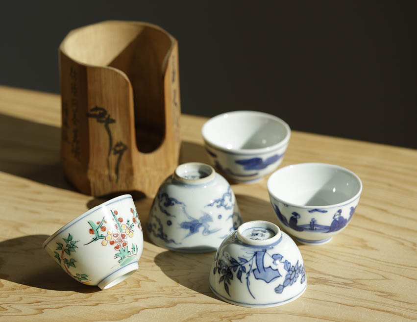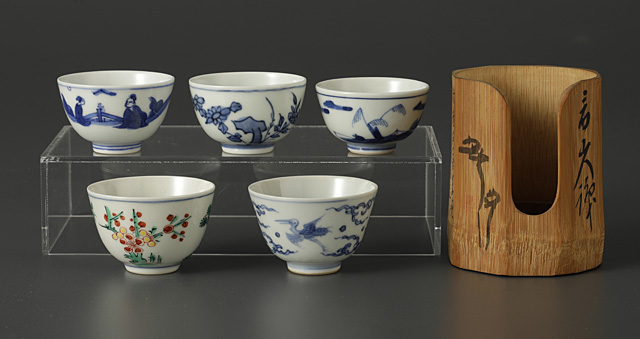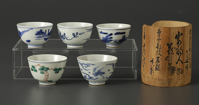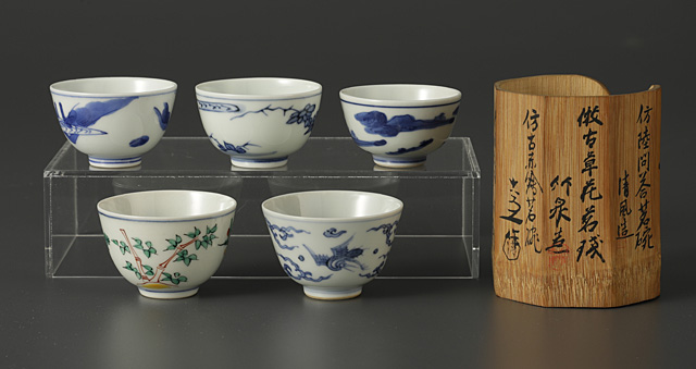 古染附写茶碗(5点1組)