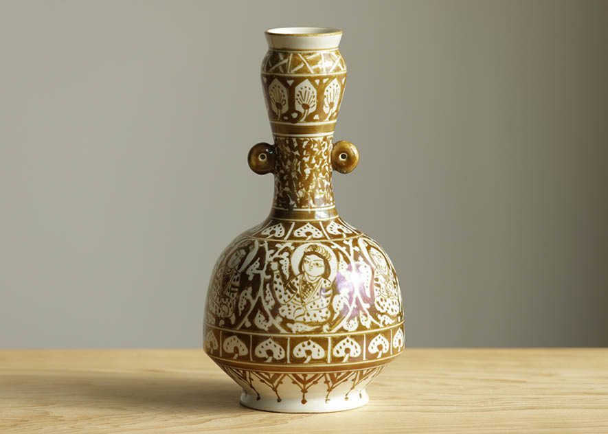 ラスター彩胡姫文双耳花入