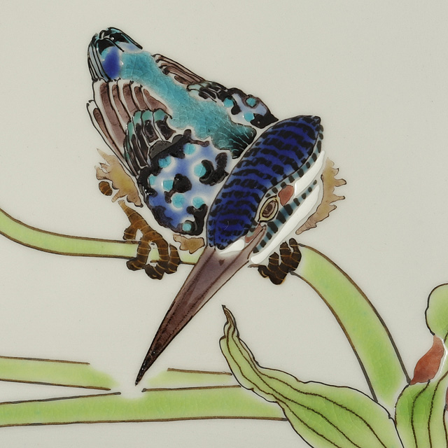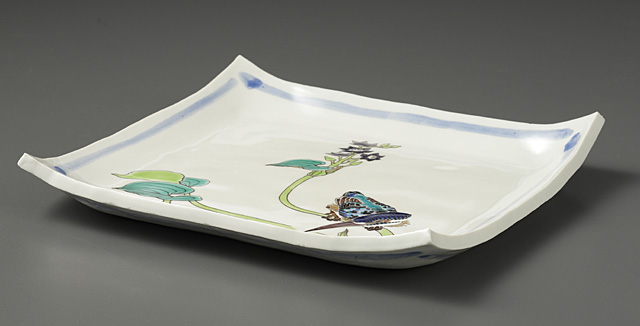 【Lot0235】 色絵川蝉文盛器