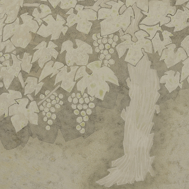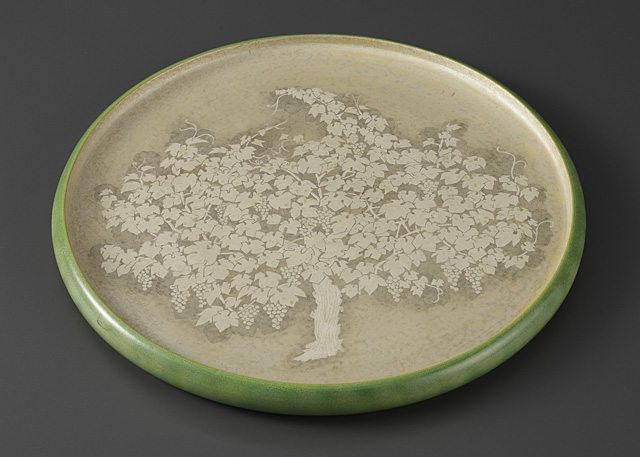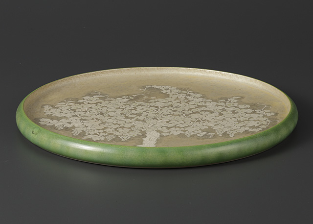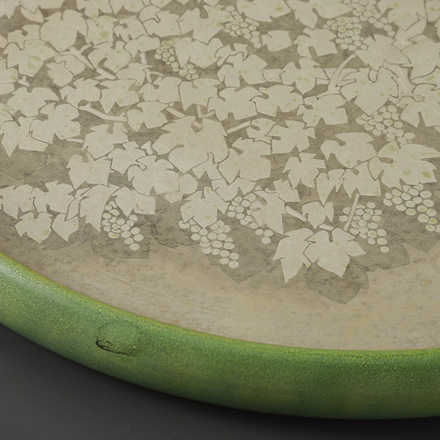 【Lot0120】 銀泥彩磁葡萄の木文皿