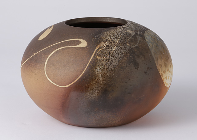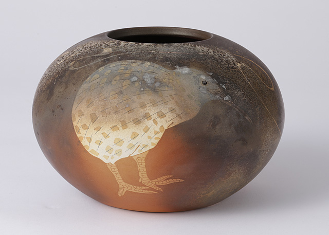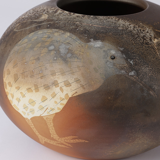 ■作品名:象嵌彩窯変キュウイ鳥花壺