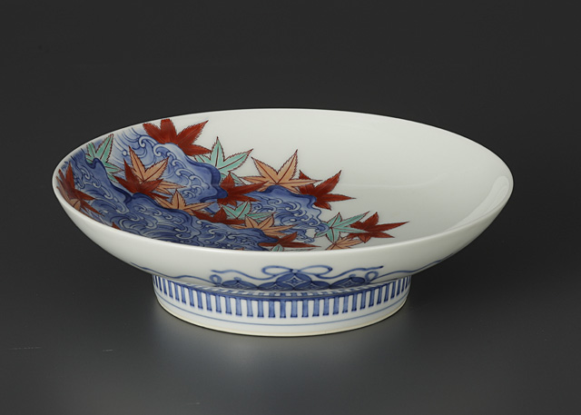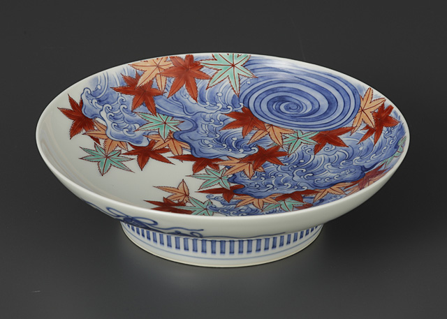 ■作品名:色鍋島浪紅葉絵高台皿