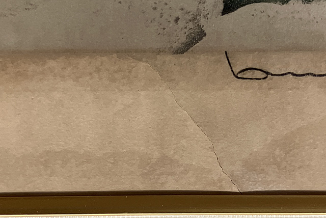 ■備考:(作品)紙による裏打ち 版面及びマージンに強いヤケ、数ケ所にヤブレ、ヤブレの修復 マージン数ケ所にシミ 未額開け
