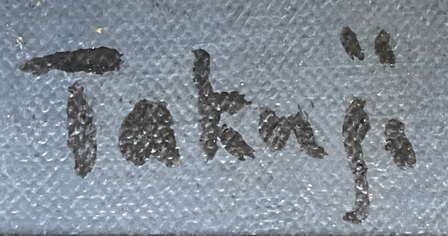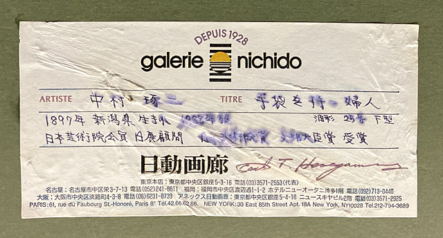 ■備考:(作品)「日動画廊」シール キャンバス裏木枠にシール貼付 画面所々に絵具の縮み、修復、数ケ所にヒビ、剥落、絵具の浮き