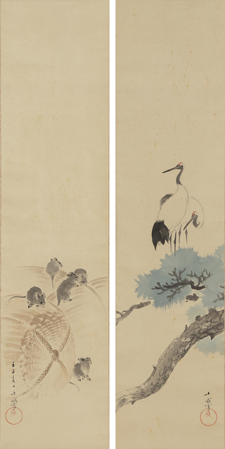 【Lot0152】 松上鶴・豊実鼡(双幅)