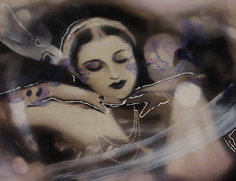■技法:パネルに貼付した綿布に油彩・銀箔