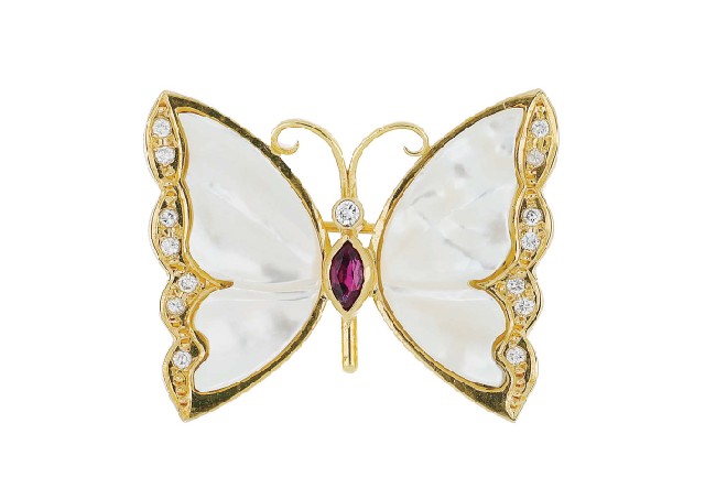 【Lot2115】 シェル マルチカラーストーン ブローチ