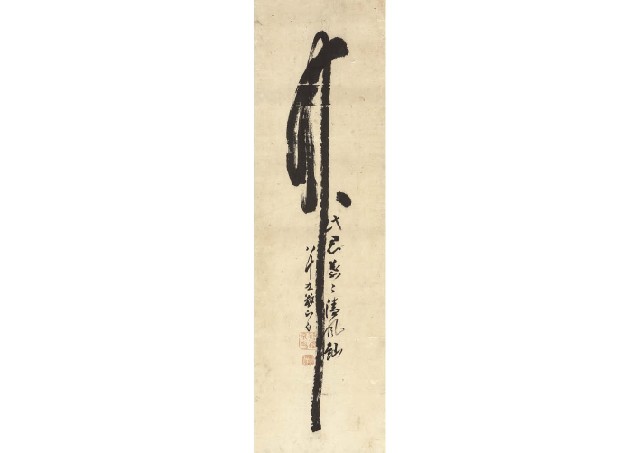 紙に墨 落款と印有 軸装 92.7×27.4(紙)cm 全体/181.5×36cm イタミ 箱付