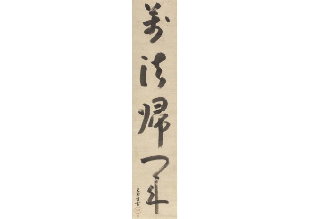 紙に墨 落款と印有 軸装 125×26.3(紙)cm 全体/190.5×32.8cm イタミ、直し 堀江知彦箱、外箱