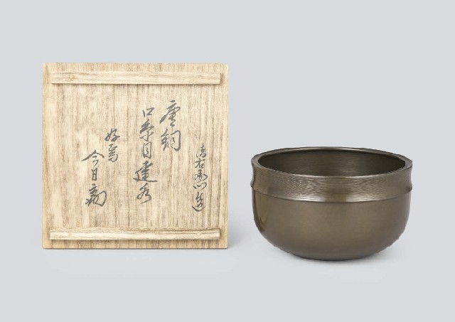 【Lot0263】 唐銅口糸目建水(淡々斎好書付)