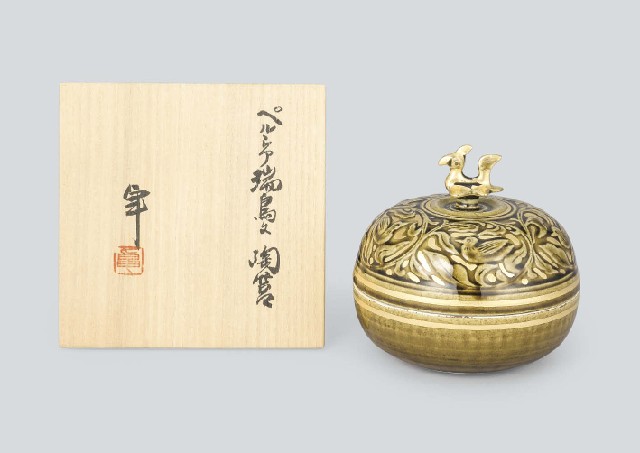 【Lot0388】 ペルシア瑞鳥文陶筥