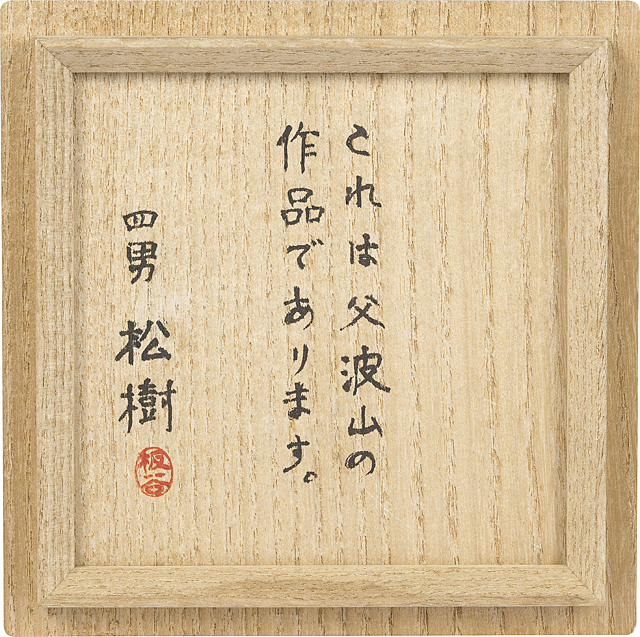 H11.7×W11.8cm 底部に印銘「波山」 板谷松樹箱 「東美鑑定評価機構鑑定委員会」鑑定証書 ※状態についてはお問い合せください。