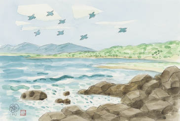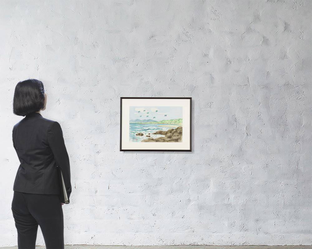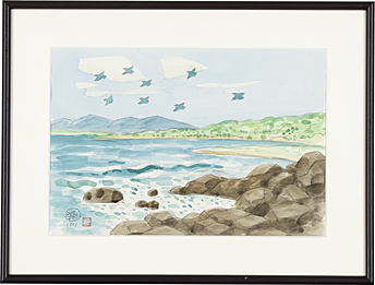 1993年 紙に水彩 38×49.8(紙)cm サインと印有 画面全体に薄いヤケ 額付