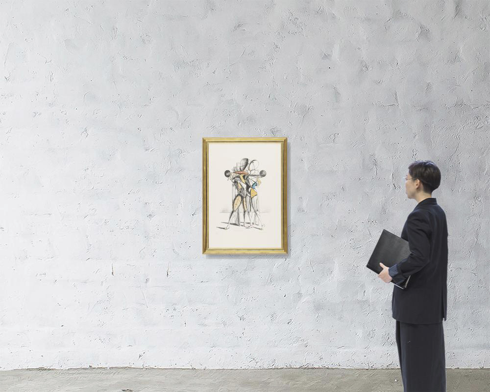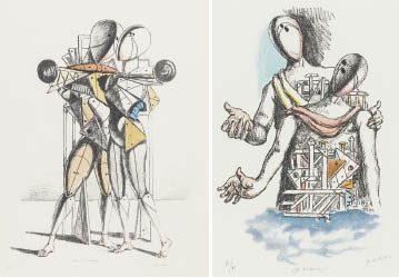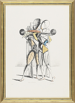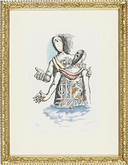 リトグラフ 68.5×53cm サイン有 ed.90 版面及びマージンに薄いヤケ、数ヶ所にシミ、わずかなシワ マージンにわずかな波打ち もう1点は【考古学者】(リトグラフ 45×29cm サイン有 ed.95 版面1ヶ所にわずかなシワ 版面及びマージンに薄いヤケ) 2点共額付*