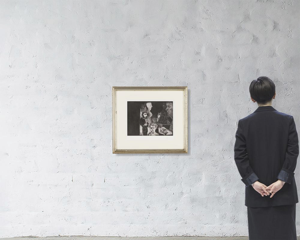 B.1584/G1600.B.b.1 1968年 メゾチント 31.4×41.6cm サイン有 ed.50 シートサイズ 45.5×56.3cm シート全体に薄いヤケ、数ヶ所にわずかなシワ マージン及び裏面数ヶ所にシミ 裏面縁沿い数ヶ所にテープの剥し跡 額付