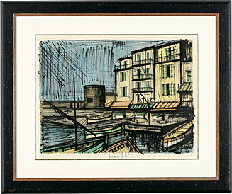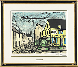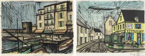S.278 1979年 リトグラフ 48×65cm サイン有 ed.80 版面及びマージンにヤケ もう1点は【マレイユ 黄色と青色のカフェ】(S.465 1985年 リトグラフ 50×65cm サイン有 ed.150 版面数ヶ所にわずかな退色 版面及びマージンに薄いヤケ) 2点共額付*
