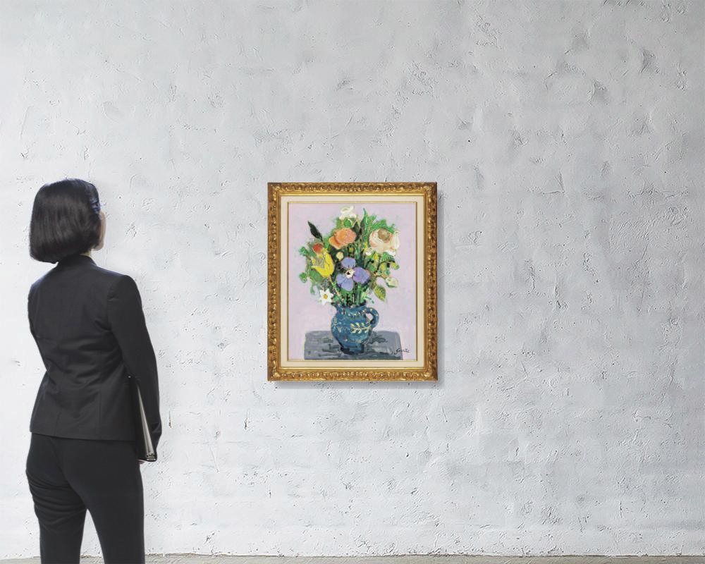 キャンバスに油彩 仏F12号 サイン有 キャンバス裏にもサイン、タイトル 額付