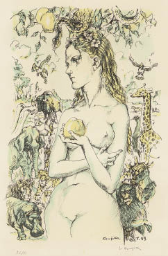 B.60.29 1960年頃 リトグラフ 41.7×28.5cm ボールペンサイン ed.80 シートサイズ 56.4×38.2cm シート全体にヤケ マージン及び裏面数ヶ所にシミ 額付