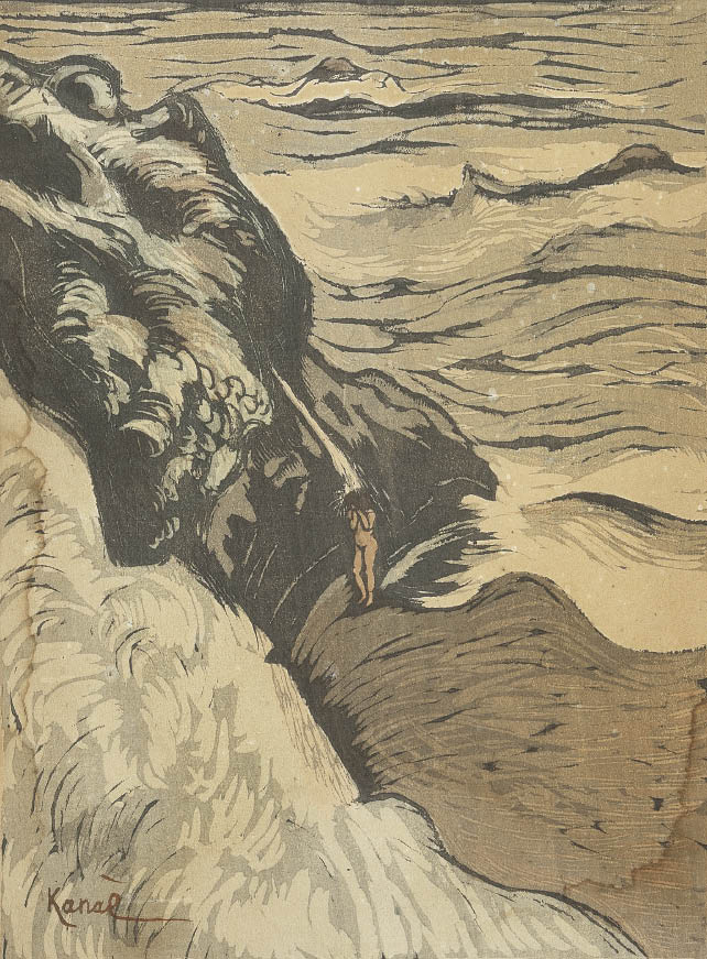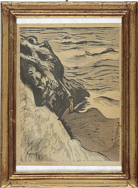 木版 32.5×24.2cm 版上サイン シート全体にヤケ、数ヶ所にシミ、シワ、縁沿い1ヶ所にヤブレ 版面全体に退色 マージン数ヶ所に穴 額付