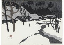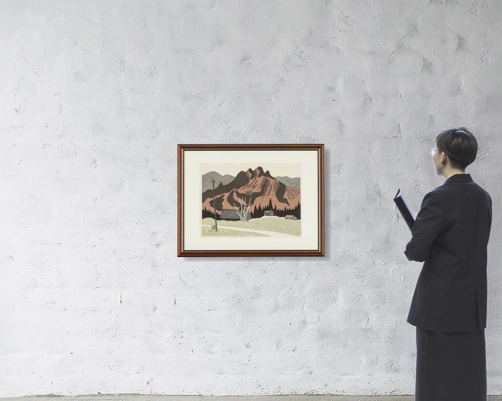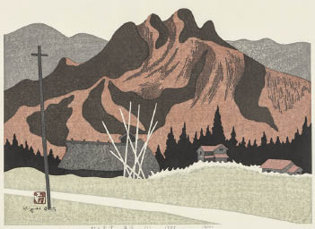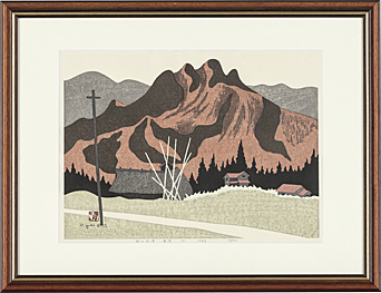 阿部出版No.207 1983年 木版 38×52.8cm サインと印有 ed.130 シート全体に薄いヤケ、数ヶ所にシミ、わずかなシワ 裏面縁沿い数ヶ所にテープ貼付 額付