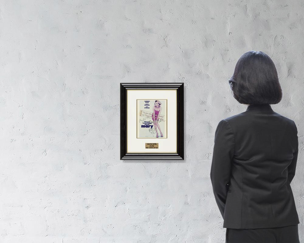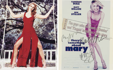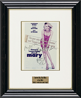 22.2×18(額窓)cm サイン有 版面全体に薄いヤケ もう1点はキャメロン・ディアス&マット・ディロン&ベン・スティラー【直筆サイン入写真:「メリーに首ったけ」より】(24.6×19.1(額窓)cm 3名のサイン 版面及びマージンにヤケ) 2点共額付*
