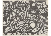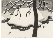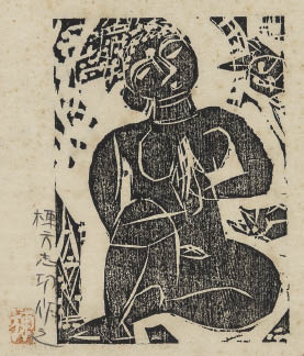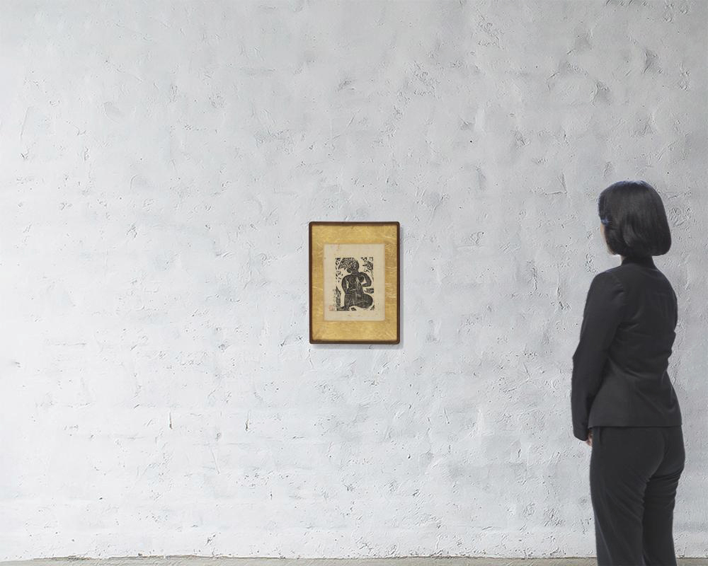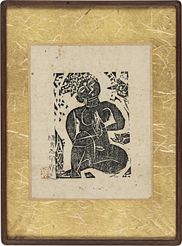 板画 22.2×14.4cm サインと印有 シートサイズ 29.4×23cm 作品は裏面1ヶ所を台紙に貼付 シート全体に薄いヤケ、所々にシミ 額付