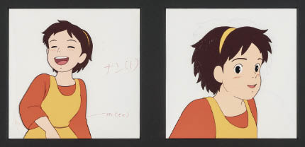 22.9×26.4(各)cm 各動画付 いずれも画面数ヶ所にコスレ、ヨゴレ 1枚の画面数ヶ所に剥落 1枚の縁沿い1ヶ所にわずかなワレ 額付 キャラクター:ナン セル番号:15P.161A21/A9