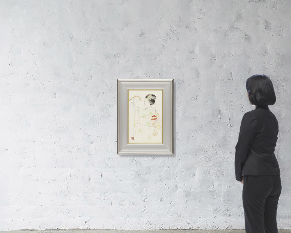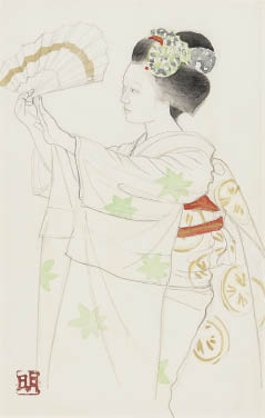 紙に鉛筆・パステル・グワッシュ 49.4×32cm 印有 「橋本弘安」鑑題シール 紙とパネルによる裏打ち 画面全体に薄いヤケ、数ヶ所に点状のシミ、1ヶ所にわずかなシワ、縁沿い数ヶ所にヤブレ、ピンホール 額付