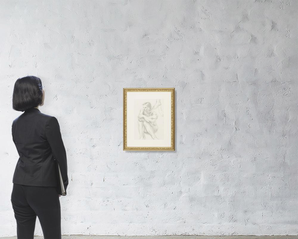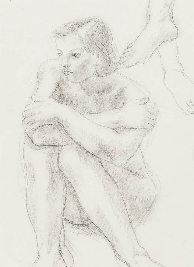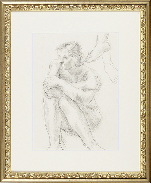 紙にコンテ 37.2×27.4(紙)cm 紙裏にサイン、タイトル 画面全体に薄いヤケ、数ヶ所にシミ、シワ、縁沿い数ヶ所にピンホール、1ヶ所にヤブレ 額付