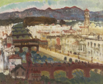 1963年 キャンバスに油彩 48.6×59.4(額窓)cm サイン有 キャンバス裏にもサイン、タイトル、年記 「梅田画廊」シール 額付*