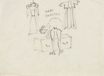 和紙に墨 21.3×27.6(紙)cm 画面全体に薄いヤケ、数ヶ所にシミ、シワ、紙の欠損 額無