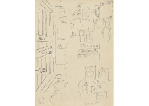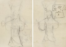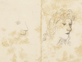 紙に鉛筆 16.9×22.4(紙)cm 紙に中折れ 画面全体に薄いヤケ、所々にシミ 額無