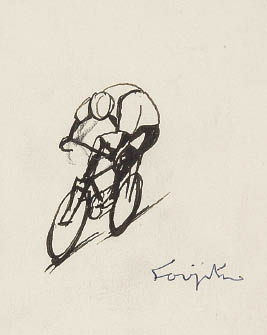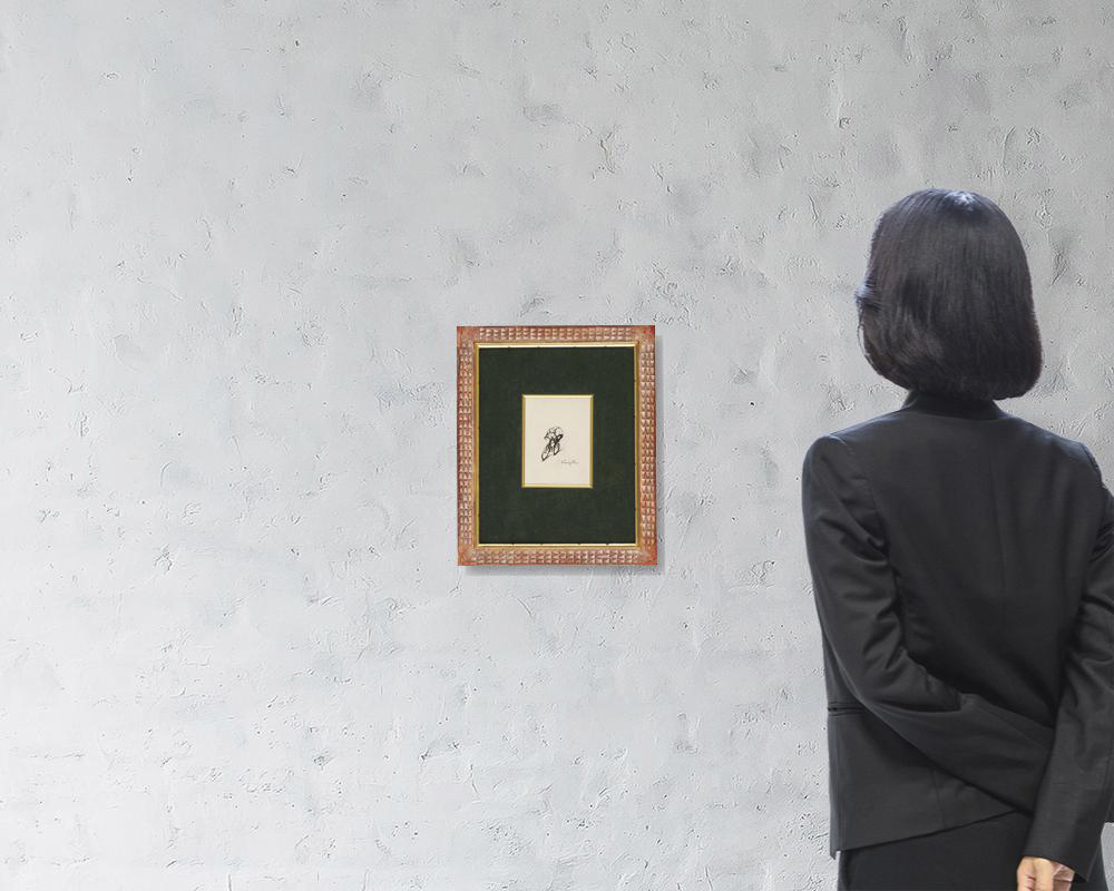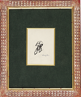 紙にペン 13.2×10(紙)cm サイン有 画面全体に薄いヤケ、わずかなヨゴレ、点状のシミ 額付