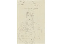 紙にペン・水彩 14.3×11.8(紙)cm 画面全体にヤケ、所々に小さなシミ、数ヶ所にシワ 額無