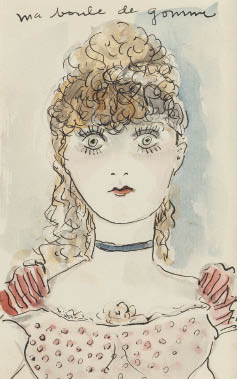 紙にペン・水彩 16.9×10.3(紙)cm 画面全体に薄いヤケ、1ヶ所に小さなシミ 額無