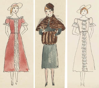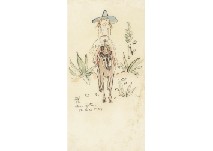 紙にペン・水彩 13×5.4~16.4×6.2(紙)cm いずれも画面全体に薄いヤケ、数ヶ所にシワ 2点の画面数ヶ所にシミ 1点の画面所々にシミ 全て額無