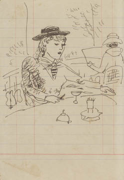 紙にペン 15.7×11.1(紙)cm 画面全体にヤケ、数ヶ所にシミ、シワ 額無