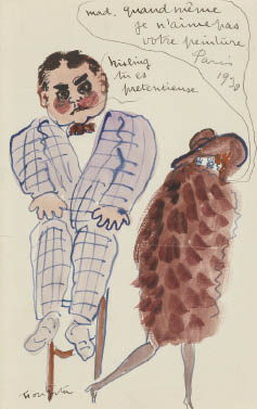1930年 紙にペン・水彩・インク 21×13.6(紙)cm サイン有 画面全体に薄いヤケ、数ヶ所にシミ、シワ、縁沿い数ヶ所にヤブレ 額無