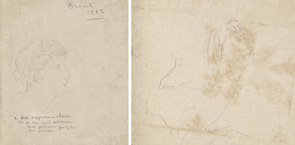 1932年 厚紙に鉛筆 16×14.2(紙)cm サイン有 画面全体にヤケ、数ヶ所にシミ、隅2ヶ所にシワ 額無