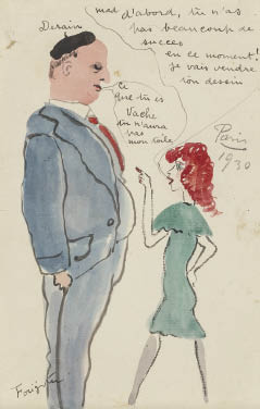 1930年 紙に墨・ペン・水彩 21×13.5(紙)cm サイン有 画面全体に薄いヤケ、数ヶ所にシミ、シワ、縁沿い数ヶ所にヤブレ 額無