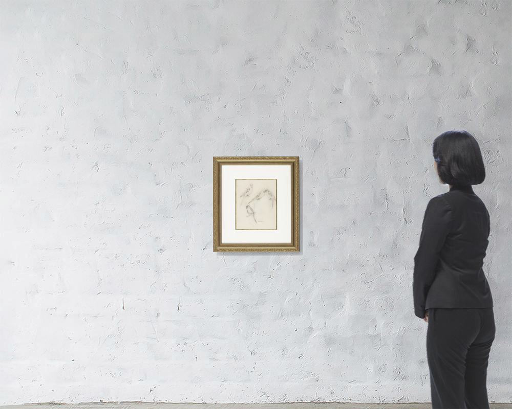 紙に鉛筆 32.4×25.1(紙)cm サイン有 画面全体に薄いヤケ、数ヶ所にシワ、わずかなヨゴレ、縁沿い数ヶ所にヤブレ、紙の欠損 額付