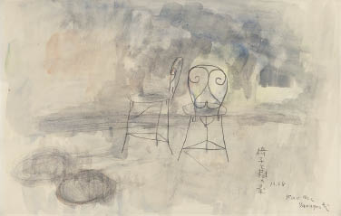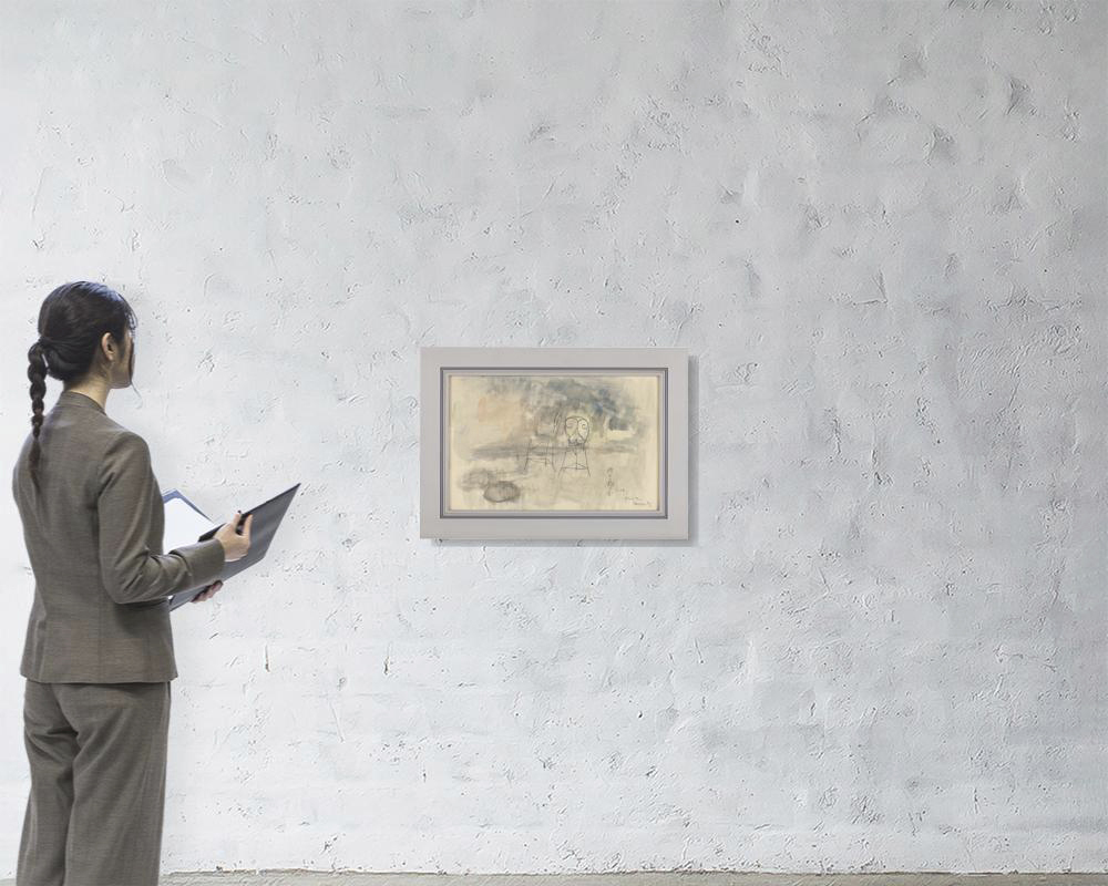 昭和28年(1953年) 紙に水彩・鉛筆 33.2×51.6(紙)cm サイン有 紙による裏打ち 画面全体に薄いヤケ、数ヶ所にシミ 額付