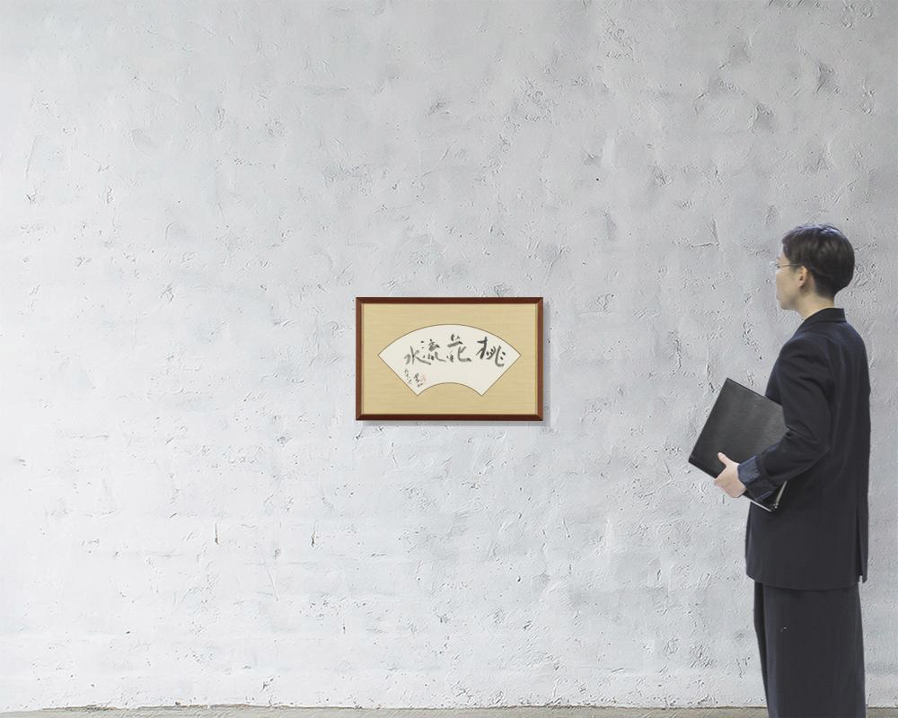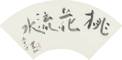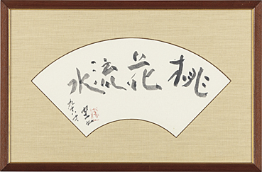 1977年 紙に墨 19×46.1(扇面型)cm 落款と印有 共シール 画面全体に薄いヤケ、数ヶ所にシミ、2ヶ所にコスレ、縁沿い数ヶ所にシワ 額付