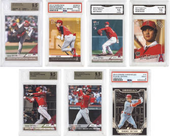 「2018 TOPPS NOW #23 SHOHEI OHTANI」「2019 TOPPS NOW SHOHEI OHTANI ROAD/OPENING DAY BONUS」「2018 Topps Now Shohei Ohtani #ST4 Rookie」「2017 Topps Now Shohei Ohtani #OS80 Rookie」「2018 TOPPS NOW #697J SHOHEI OHTANI/1325 JAPANESE」「2018 TOPPS NOW #553J SHOHEI OHTANI/1750 JAPANESE」「2019 PANINI CHRONICLES SHOHEI OHTANI OBSIDIAN」の7枚セット 4点ルーキーイヤー 全て鑑定済[1点にPSA9、1点にPSA10、2点にGMA10、3点にBECKETT9.5]