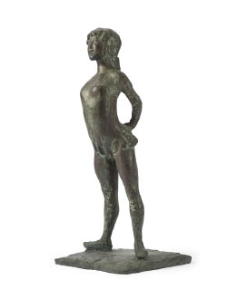ブロンズ H48×W21×21cm 底部に刻サイン 作品数ヶ所にヨゴレ、1ヶ所にヒビ、カケ、修復