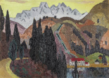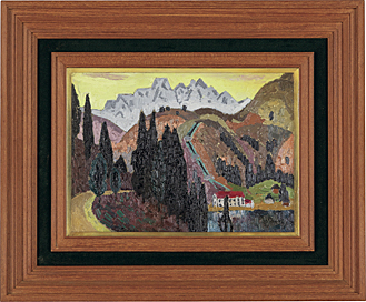 キャンバスに油彩 F4号 サイン有 キャンバス裏にもサイン、タイトル 共シール 画面数ヶ所にヒビ 額付*