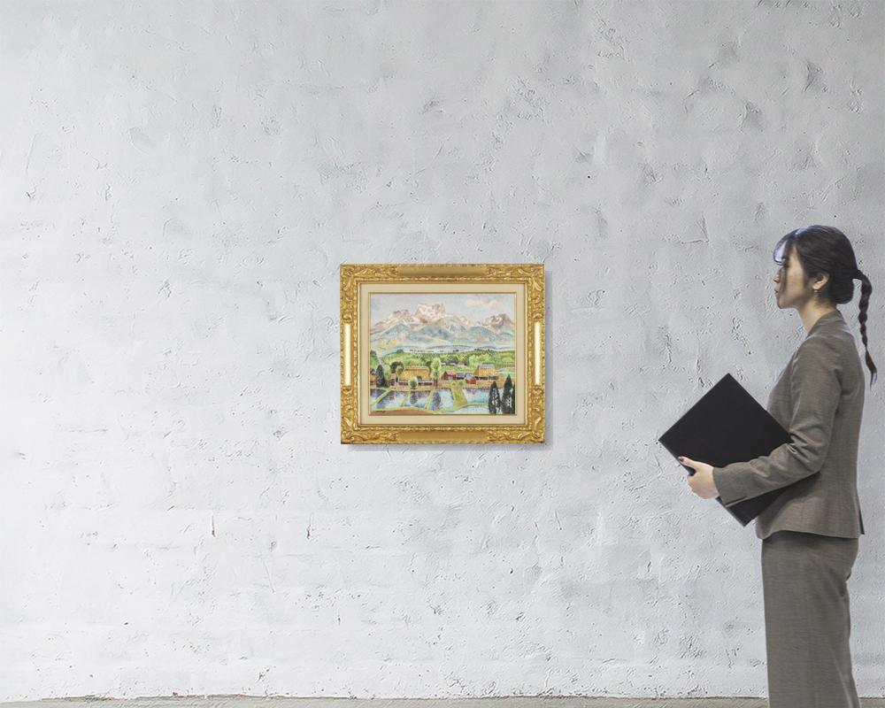 キャンバスに油彩 38×45.5cm(F8号) サイン有 キャンバス裏にもサイン、タイトル 額付