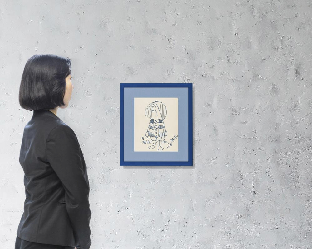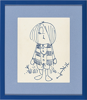 紙にペン 27.1×24.1(紙)cm サイン有 画面全体に薄いヤケ、数ヶ所にシミ、シワ、縁沿い数ヶ所にヤブレ、1ヶ所にピンホール 額付